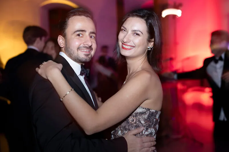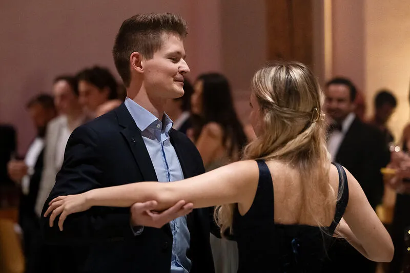 The dance floor was opened with the traditional opening dance performed by seven student couples from almost all bachelor's and master's programs, choreographed by Iva Eberle from the Liechtenstein Dance Club. This was followed by a passionate dance performance by the Tango Liechtenstein association. At midnight sharp, the guests gathered for the traditional highlight, the midnight quadrille to Johann Strauss' “Die Fledermaus,” during which everyone present was invited to dance together.