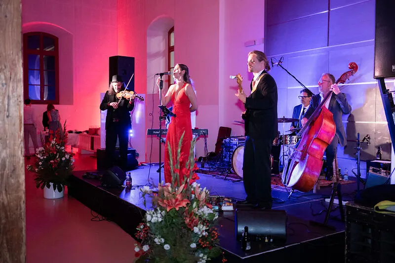 The charming and knowledgeable duo Sebastian Stöckl and Sophie Breitruck hosted the glamorous evening. Two bands from Vorarlberg provided the perfect musical accompaniment: first, the Swing Tonic Quartet presented dance music from the 1920s to the 1950s. Then the band Pastis, which stands for enjoyment and relaxation, thrilled the dance floor until the early hours of the morning.